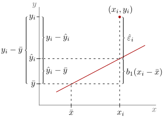 In contrast to the disturbance variables, residuals (Latin residuum = "the one left behind") are calculated variables and measure the vertical distance between the observation point and the estimated regression line. Sometimes the residual is also referred to as the "estimated residual". This naming is problematic because the confounding variable is a random variable and not a parameter. It is therefore not possible to speak of an estimate of the disturbance variable.